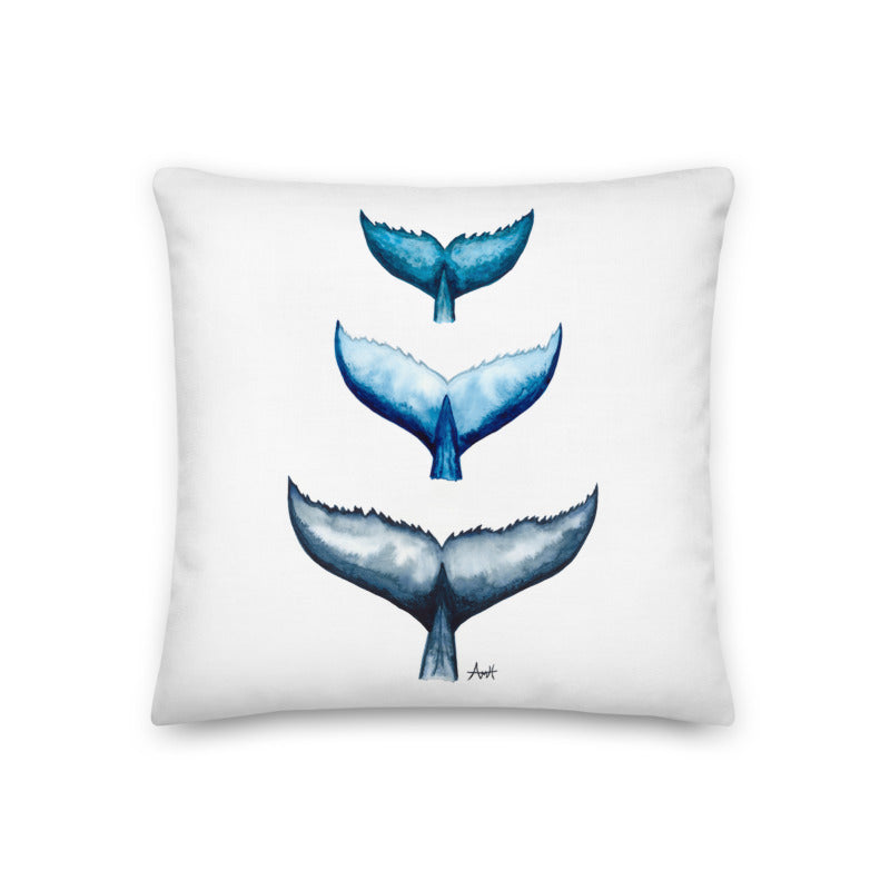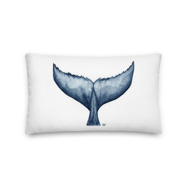"Humpback Hello" Watercolour Whale Tail Premium Pillow